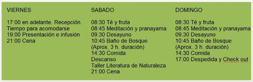 Actividades anti estrés: Sesiones pranayama y meditación al amanecer. Baño de bosque guiado por hayedo. Práctica de técnicas milenarias de relajación y consciencia en la naturaleza. Té, pastas y Literatura de Naturaleza.